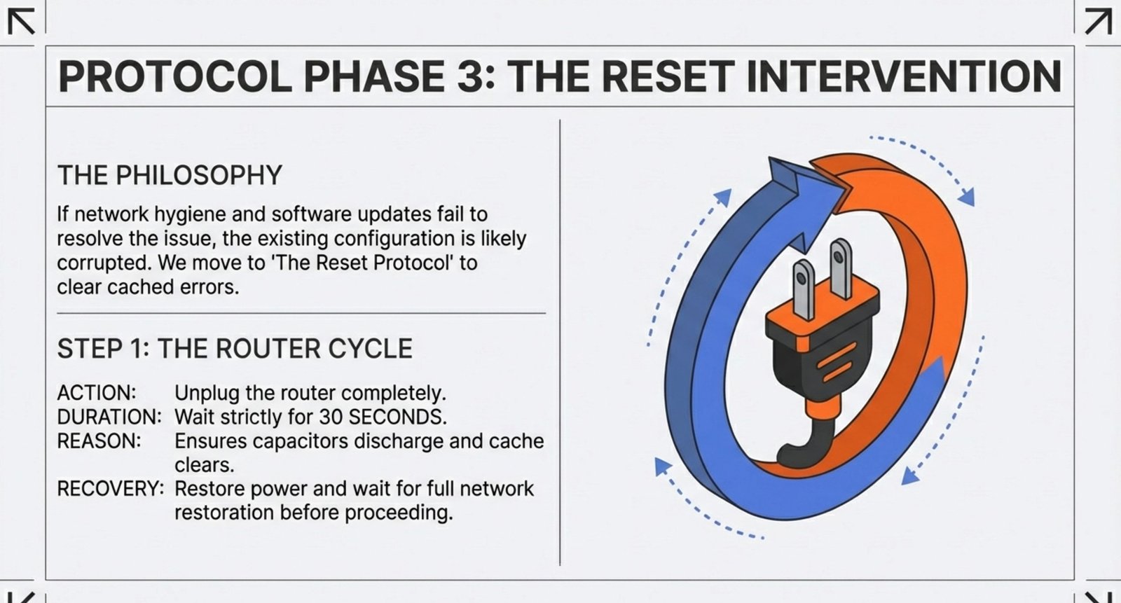 Step 3: Restart Router, Then Reset the Device (In That Order)