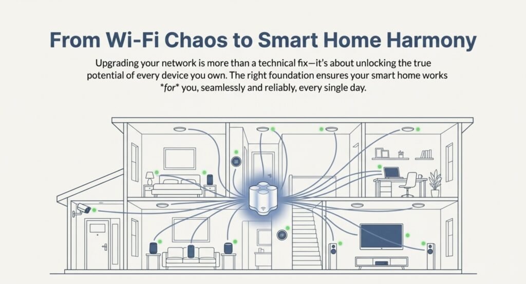 If you’re tired of recurring disconnects, upgrading to a modern, secure mesh WiFi system can eliminate most setup problems entirely — especially in smart homes packed with cameras, voice assistants, and automation hubs.