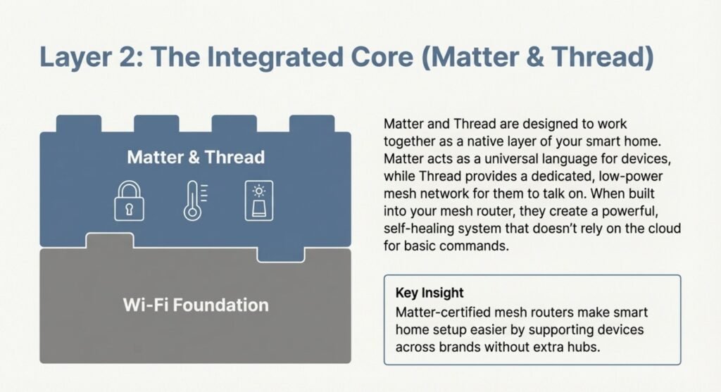 Matter-certified mesh routers make smart home setup easier by supporting devices across brands without extra hubs. Thread-enabled mesh creates a steady, low-power network for sensors and tiny gadgets that Wi-Fi can’t always handle well.