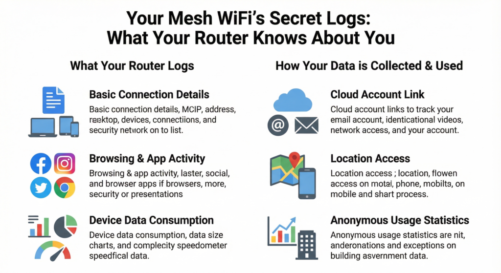 Most mesh systems log device names, connection times, and usage data via cloud dashboards. Privacy risks increase when: