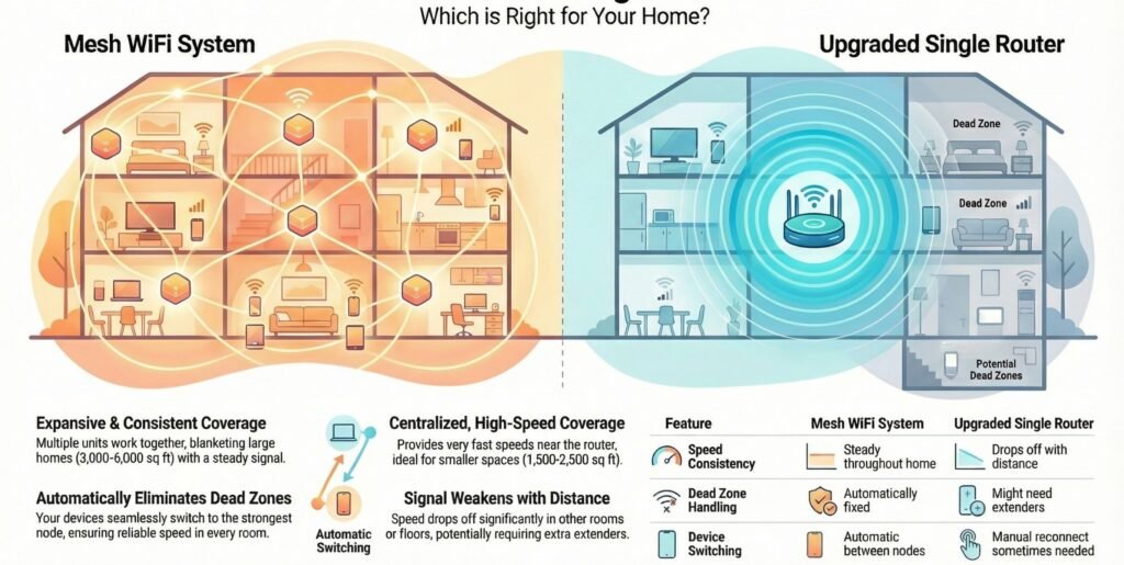 Mesh WiFi Vs Router Upgrade Comparison: Coverage, Speed, Cost