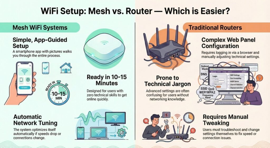 Setup Differences: Mesh Vs Router Setup Ease For Beginners