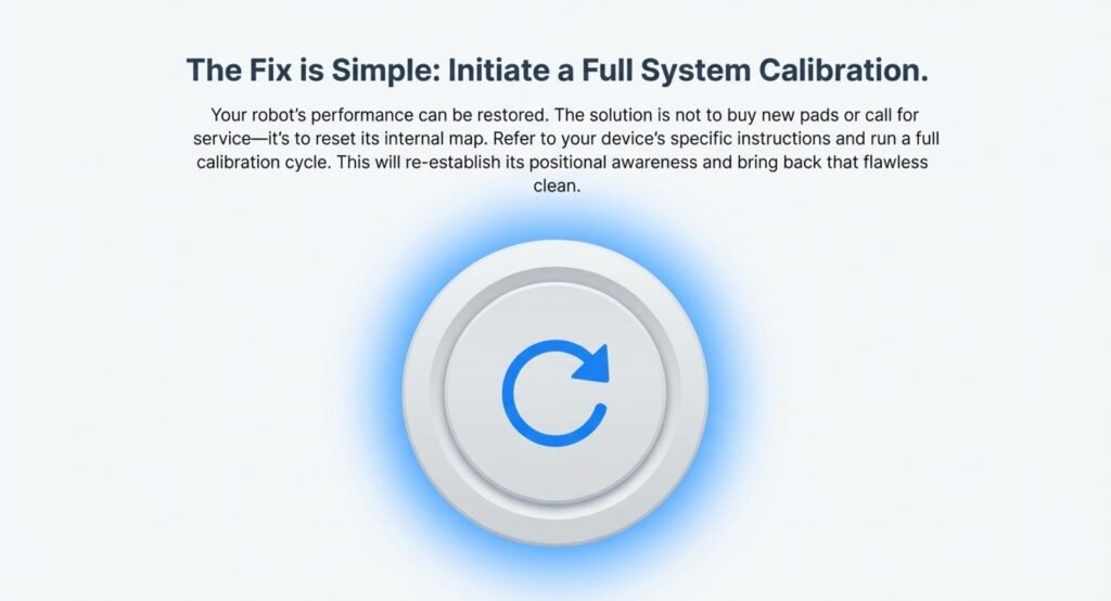 Sometimes, you’ll need a hard reset calibration if the robot keeps missing spots or acts up. Here’s how that usually goes: