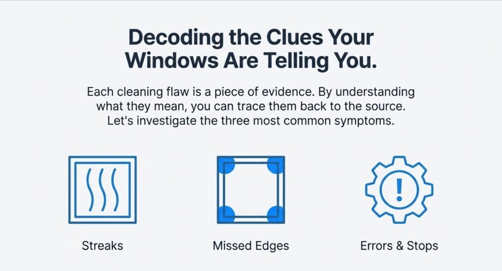 Streaks show up when the robot’s spray and movement get out of sync. If calibration’s off, the robot might zoom by too quickly for the cleaner to work, or push unevenly against the window. You end up with a window that’s half-clean and thin lines where the pad didn’t really touch.