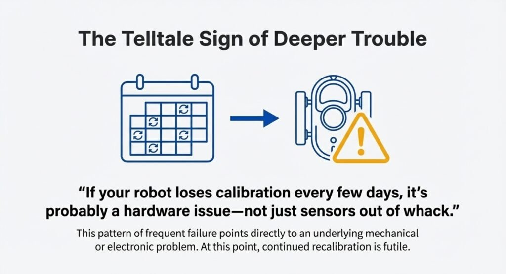 If your robot loses calibration every few days, it’s probably a hardware issue—not just sensors out of whack. At that point, you might need professional service. Most manufacturers actually suggest professional calibration after the warranty’s up, so you don’t void your coverage.