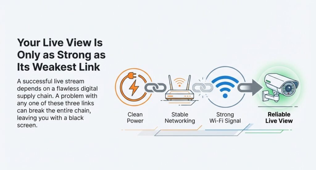 In plain terms, live view needs three things to cooperate: your phone, your WiFi router, and the camera. If one link slips, you’ll hit a smart camera live view connection issue—and suddenly smart camera live view not loading looks like “camera offline,” “unable to connect,” or an endless spinner. This guide walks you through the fastest fixes first (reboot order, WiFi checks, app cleanup), then the deeper steps (firmware updates, permissions, testing on another device).