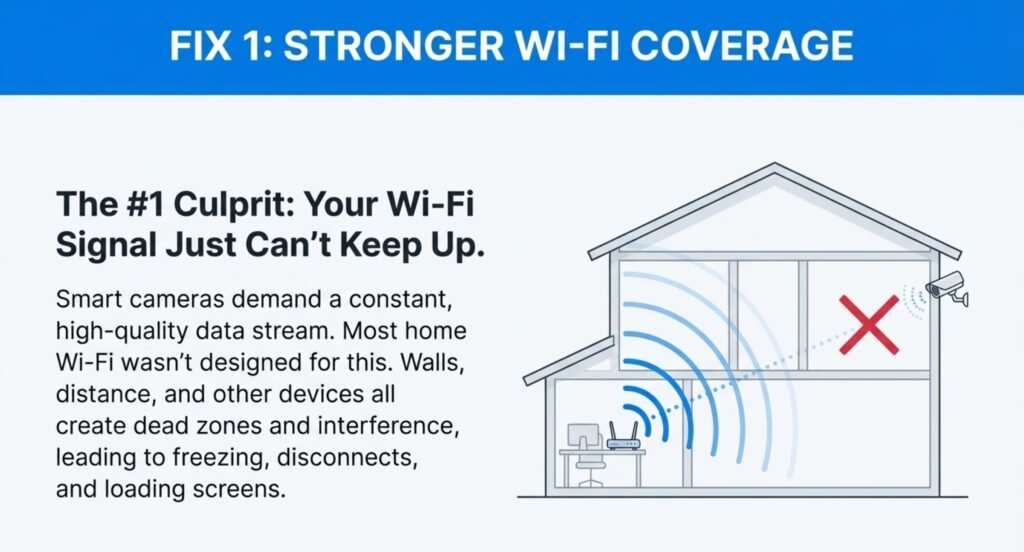 Yes. A smart camera live view Wi-Fi problem is one of the top causes of failure. Live view needs stable upload and strong signal—not just fast download speed. Distance from the router, wall interference, and crowded networks can all interrupt the stream.