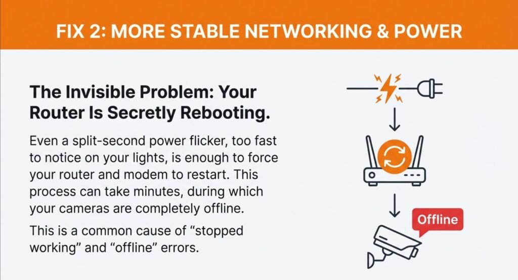 Finally, Wi-Fi comes up constantly. Weak signal, crowded networks, mesh systems, or band switching (2.4 GHz vs 5 GHz) frequently cause a live view Wi-Fi problem, especially for outdoor or garage cameras. Even users with fast internet are surprised to learn that upload stability matters more than speed.