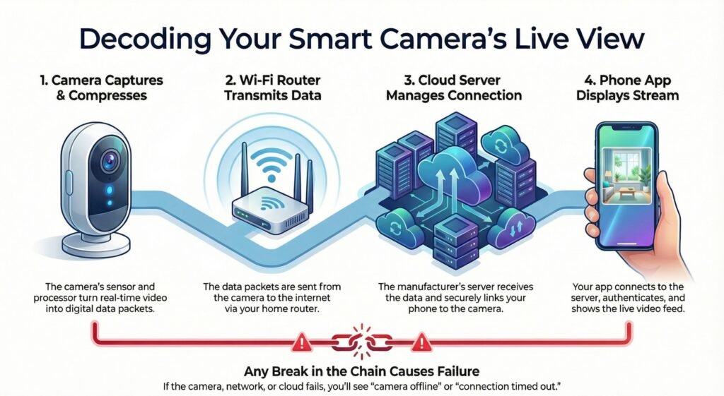 Smart cameras stream video over your home network—so when smart camera live view not working, the break is usually in the phone app, WiFi, or cloud handoff. If any part fails, smart camera live view not loading is often the first symptom you’ll notice.