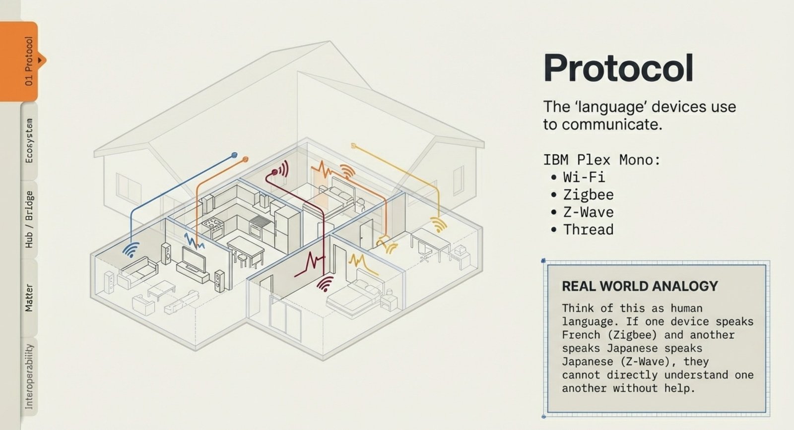 - Protocol: The “language” devices use to communicate (Wi-Fi, Zigbee, Z-Wave, Thread).