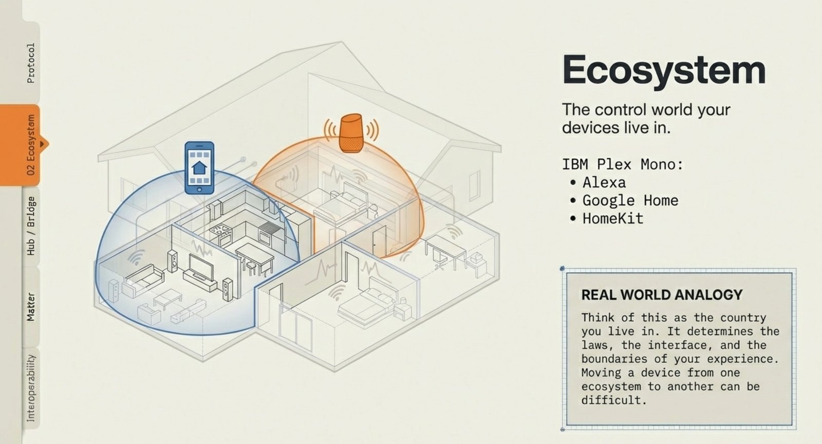 - Ecosystem: The control world your devices live in (Alexa, Google Home, HomeKit).
