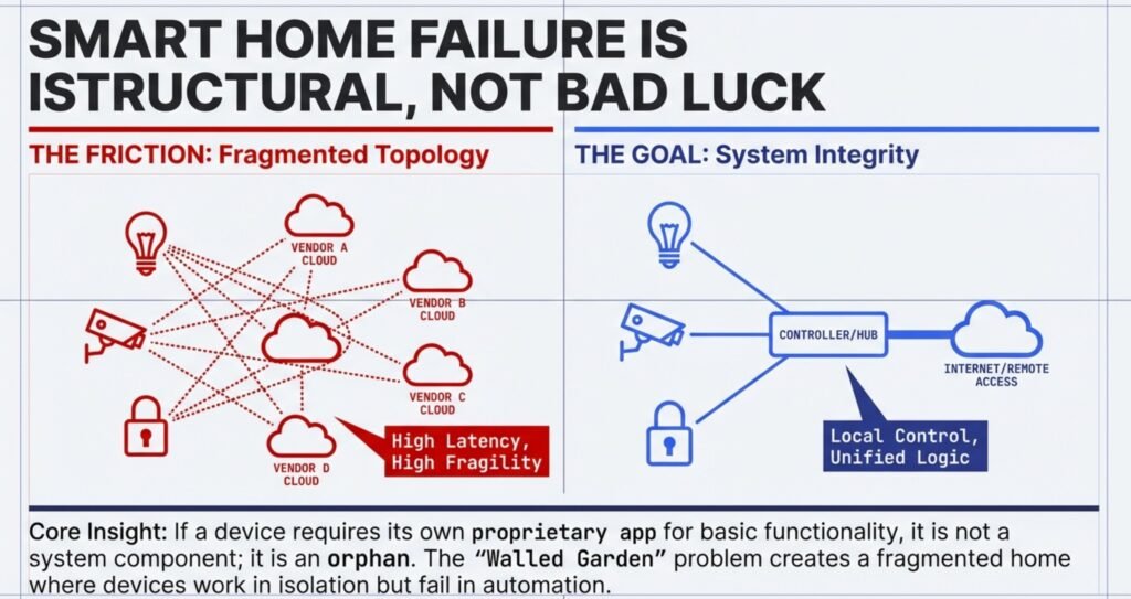 Because “connected” isn’t the same as “integrated.” Most failures come from protocol mismatch, ecosystem restrictions, missing hubs/bridges, or software updates that change permissions and break routines.