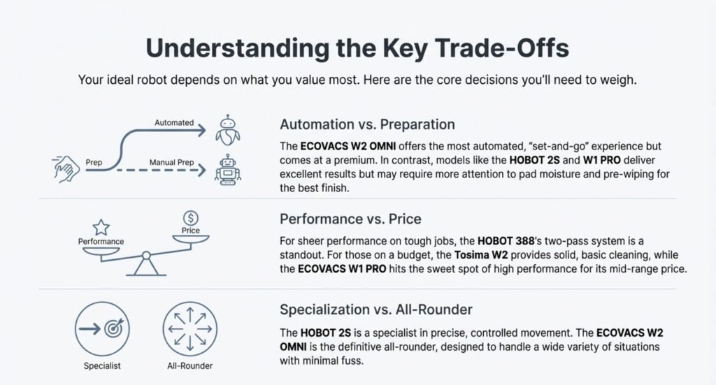 Each robot has its own needs for cleaning solution, pad setup, and prepping the window. If you treat every robot the same, you’re asking for trouble. Small setup misses—like not priming pads evenly—often trigger the window cleaning robot streaks problem right away.