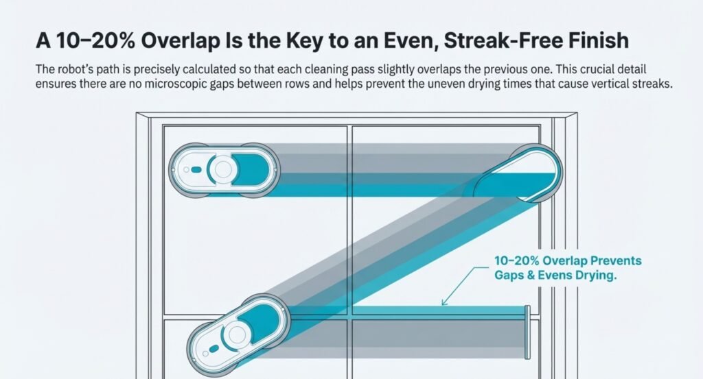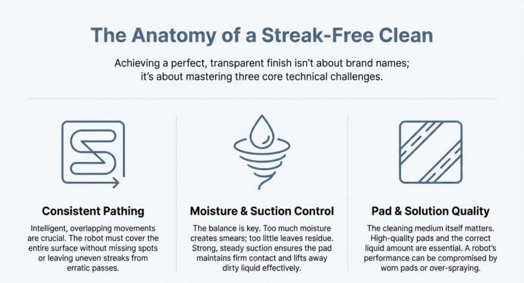 Also, make sure the robot’s suction stays strong the whole time. If it gets weak, the pads won’t press evenly on the glass, and you’ll get streaks.