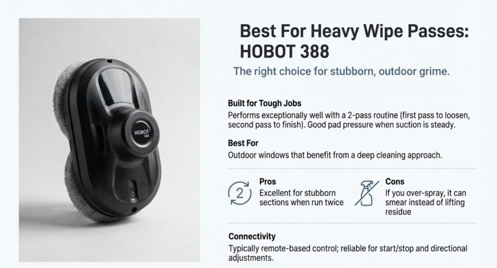 Best For Heavy Wipe Passes HOBOT 388 Good for repeat passes |
