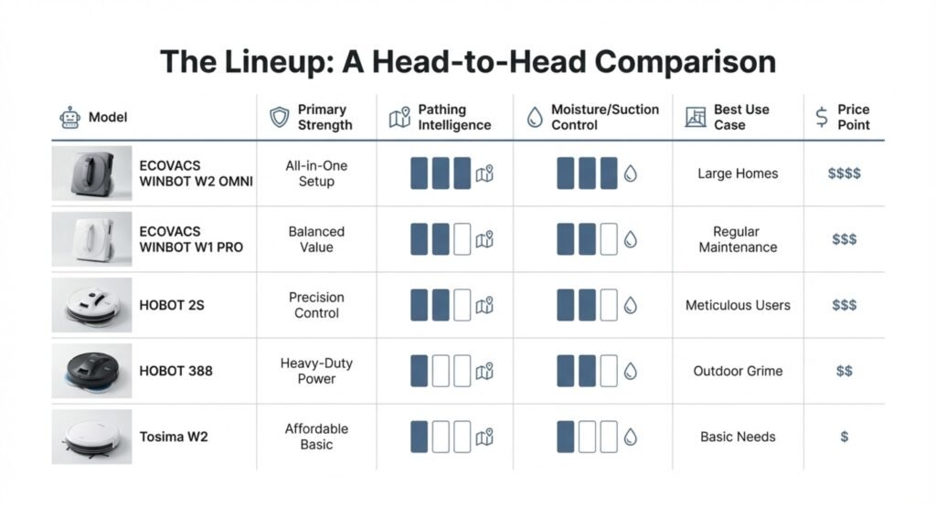 Outdoor windows that benefit from “first pass + second pass” cleaning. | Typically remote-based control; reliable for start/stop and directional adjustments. |