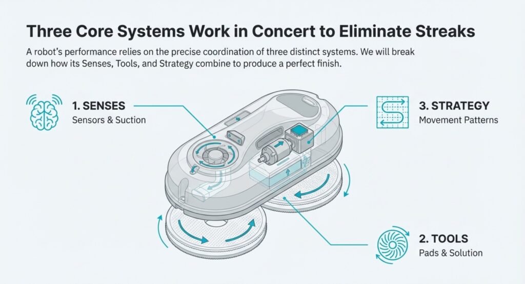 Window cleaning robots rely on three main things: sensors to keep them safe, pads that scrub away dirt, and programmed patterns to make sure they don’t miss spots.