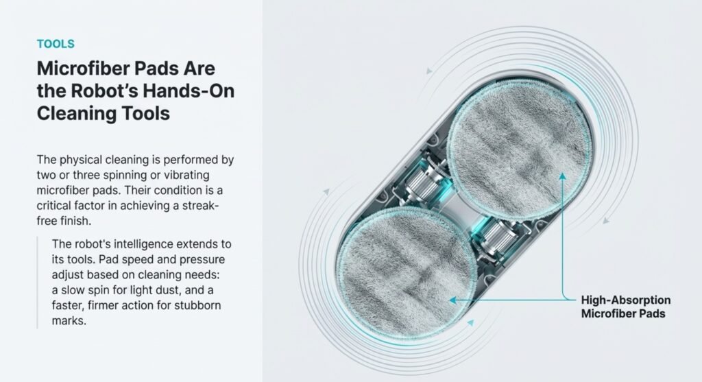 The robot uses microfiber pads underneath—it’s pretty simple. These pads spin or vibrate as the robot moves. Most robots have two or three pads working at once. When the pads are oversaturated or slightly dirty, the window cleaning robot streaks problem becomes almost guaranteed.